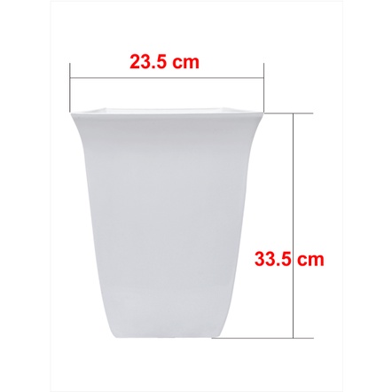 - Chậu trắng vuông : Rộng 23,5cm, cao 33,5cm