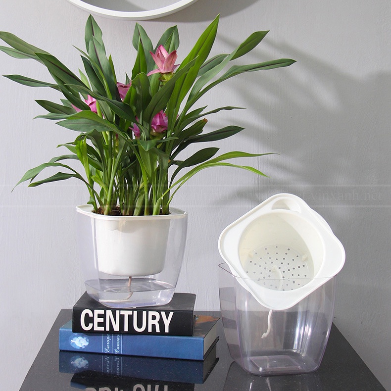 Chậu nhựa trồng cây để bàn thông minh/ tự tưới/ tự dưỡng/ chậu trong suốt rộng 12.5cm