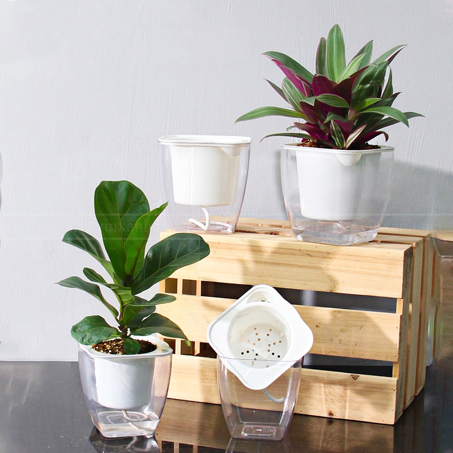 Nhà cửa & Đời sống > Làm vườn > Chậu cây || Chậu nhựa trồng cây để bàn thông minh/ tự tưới/ tự dưỡng/ chậu trong suốt rộng 12.5cmCòn hàng