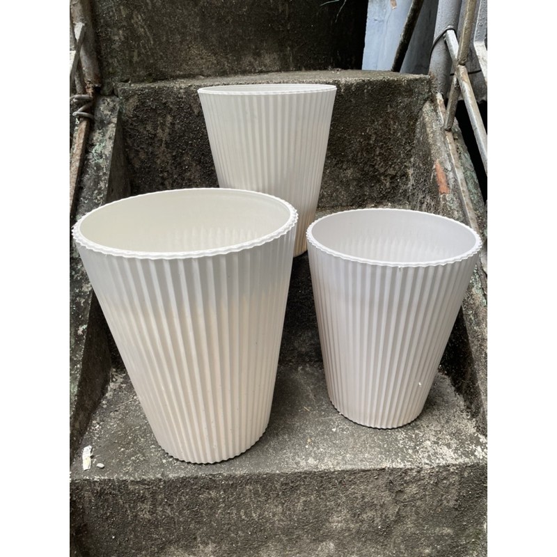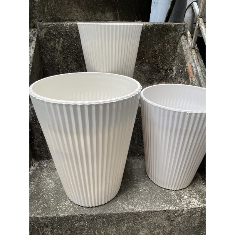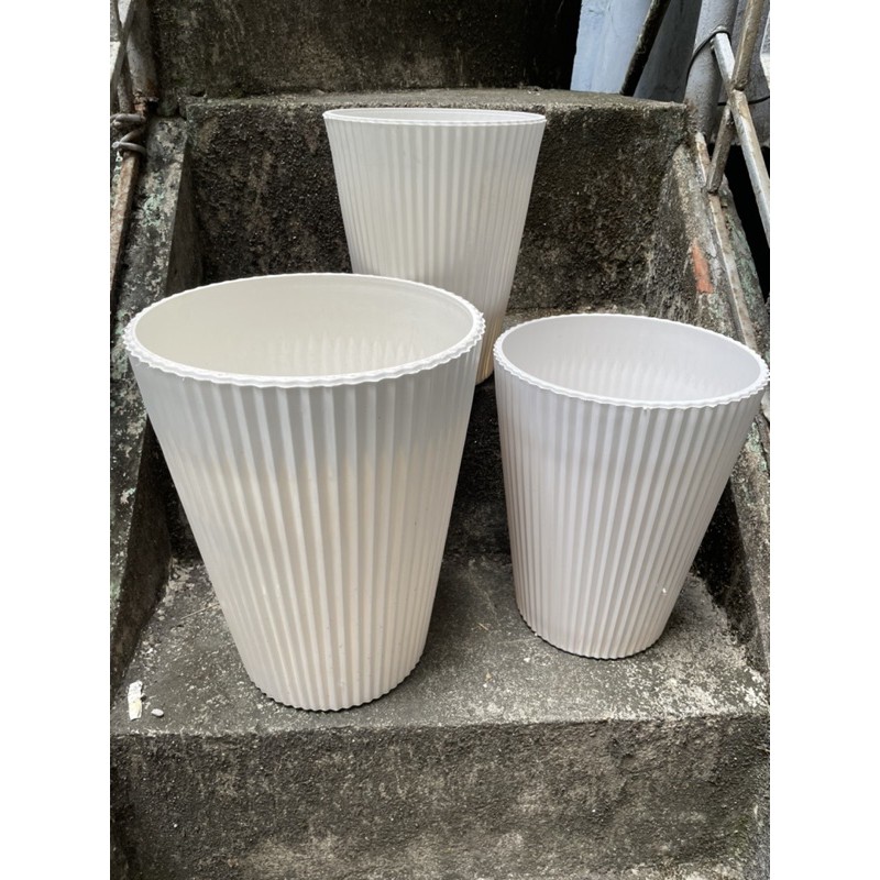 Chậu nhựa trồng cây gân sọc dọc loại cao cấp- Nhựa COMPOSITE cao cấp loại 1, không đàn hồi, trắng sọc, không ảnh hưởng môi trường