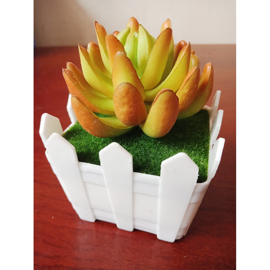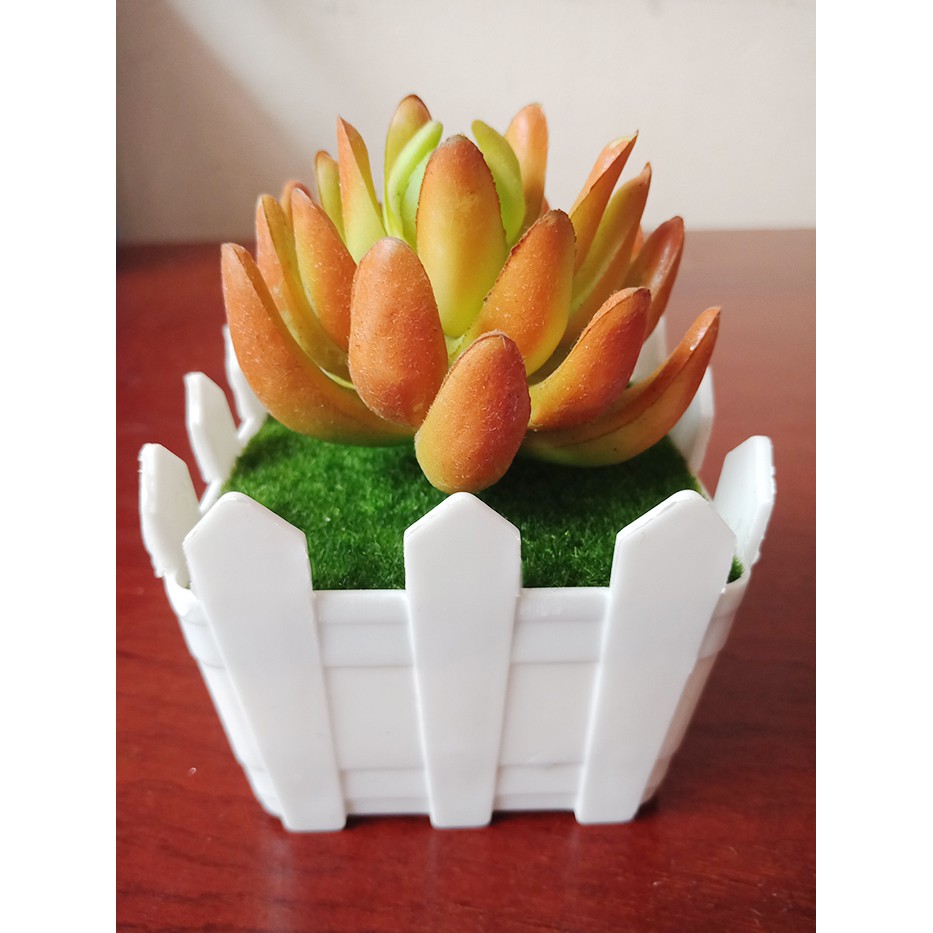 Chậu nhựa - trồng cây giả mini sen đá