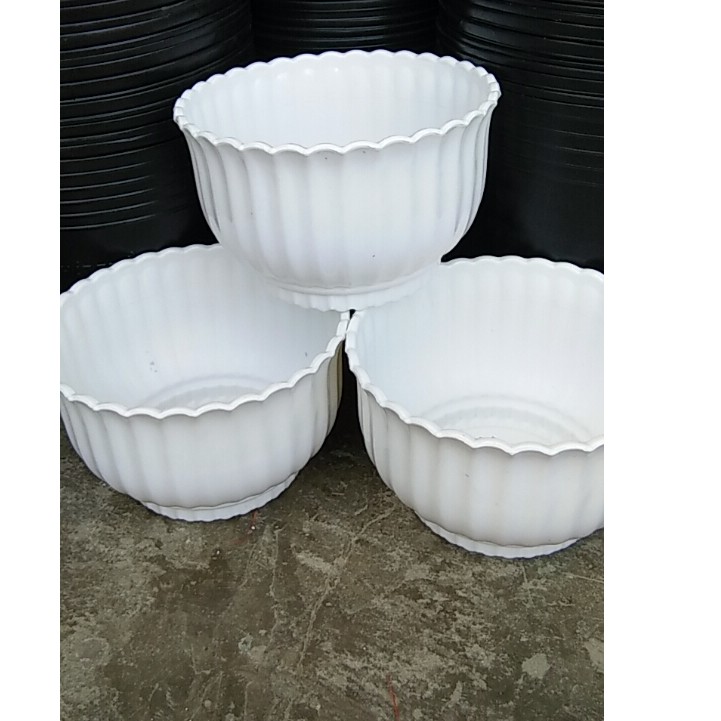 * Chậu nhựa trồng cây Chiếc Lá có kiểu dáng đầy đặn vững chãi, phần miệng chậu được nhấn mạnh bởi hoa văn của nhiều cánh hoa ghép lại, kết thúc bằng gờ chỉ nhựa nổi kết nối phần thân chậu.