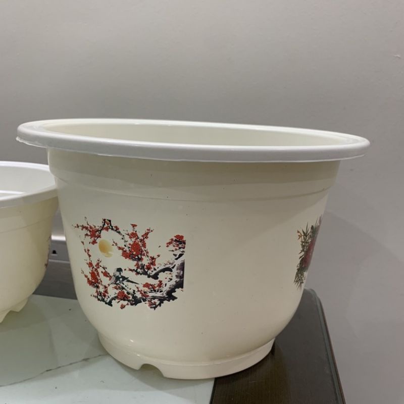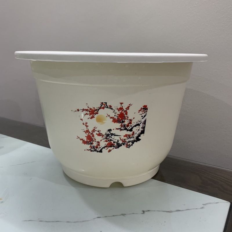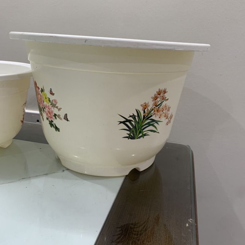 Chậu nhựa tròn trồng cây màu trắng in hình hoa lá này có rất nhiều kiểu. Chậu ATP. Mỗi chậu có nhiều hình in khác nhau.GÍA TRÊN LÀ BAO GỒM 5 CHẬU HOẶC 10 CHẬU KHÁCH NHÉ!