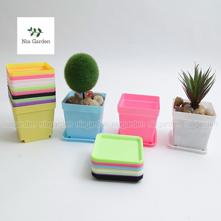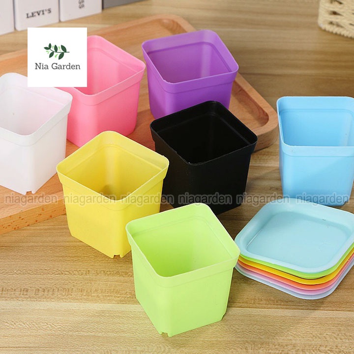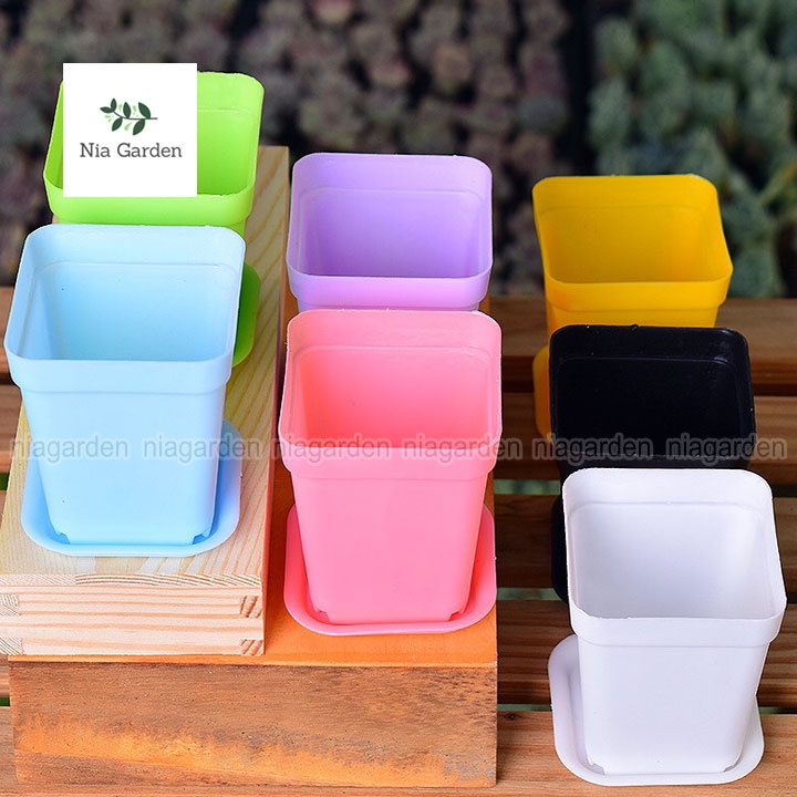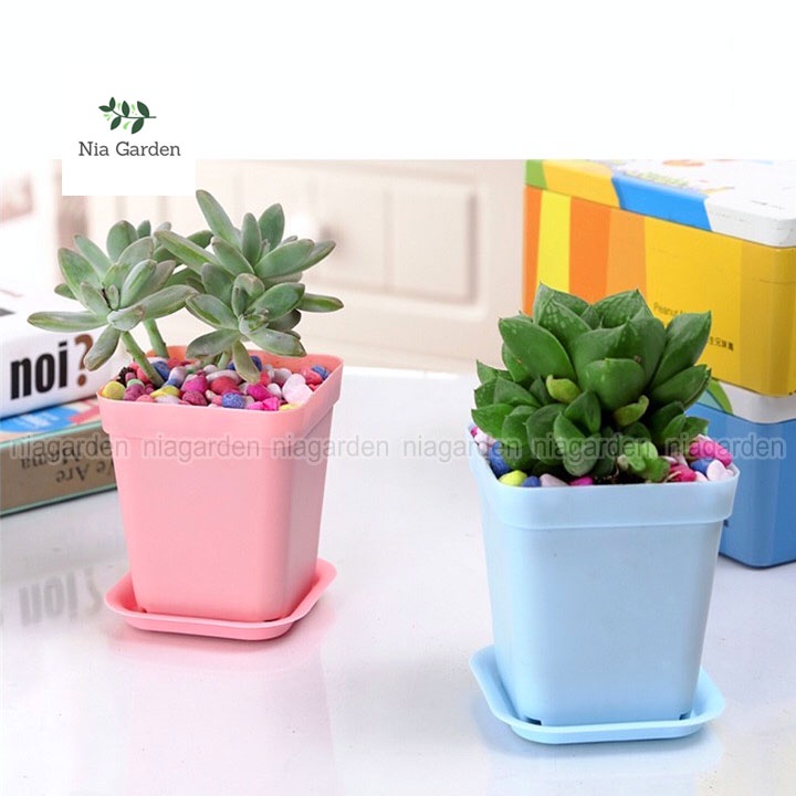 Nhà cửa & Đời sống > Làm vườn > Chậu cây || Chậu nhựa trồng cây sen đá xương rồng cây để bàn mini vuông màu pastel Nia Garden N8Còn hàng
