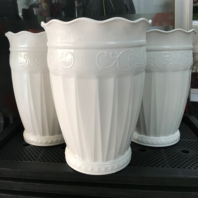 Chậu nhựa Hình Trái Bom được làm từ nhựa trắng nguyên chất dập khuôn.Phơi mua nắng thoải mái, 5-6 năm vẫn 1 màu trắng, không ố vàng.