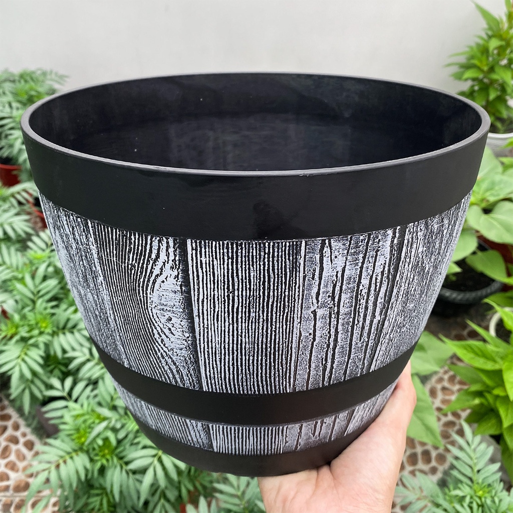 Chậu nhựa tròn vân gỗ họa tiết được thiết kế dựa trên thùng gỗ tạo phong cách mới mẻ cho khu vườn của bạn.Chậu được làm từ nhựa Polyproylen (PP). Một loại nhựa có tính bền cơ học cao. Cùng với độ bóng bề mặt tốt. Giúp chậu nhựa có khả năng chịu lực hay những tác động thời tiết mà không làm ảnh hưởng đến chất lượng cũng như họa tiết bề mặt.