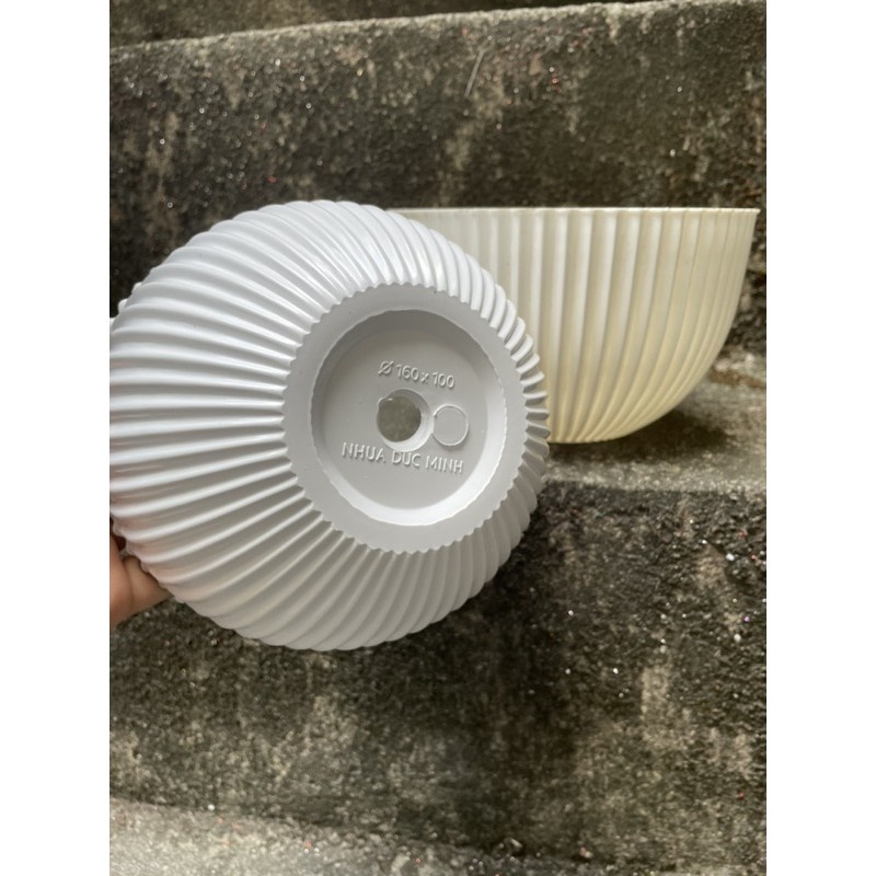 chậu nhựa trồng cây vân sò loại dày , đẹpchậu màu trắng