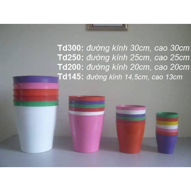 Chậu nhựa tròn có nhiều màu sắc, kích thước từ 14,5-30cm, thích hợp trồng hoa, cây cảnh