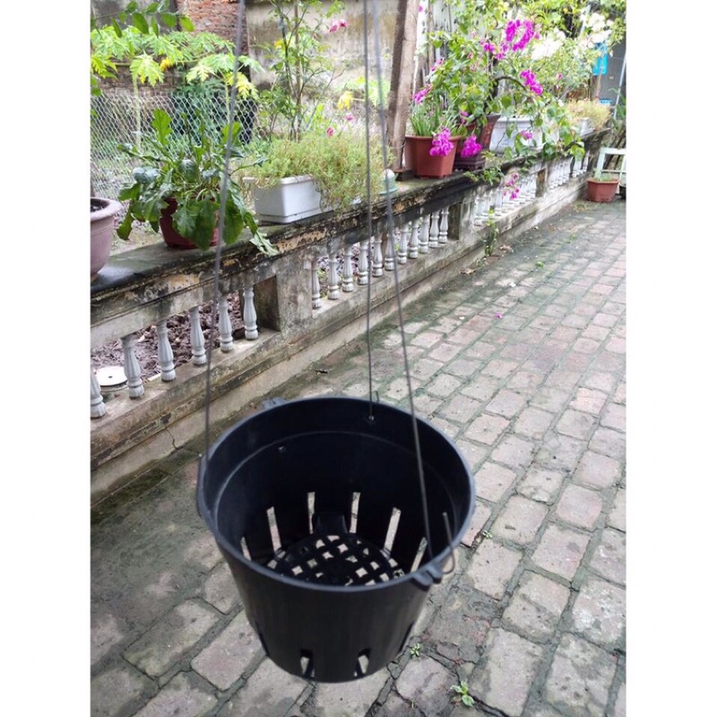 Chậu nhựa đen chuyên dùng trồng phong Lan và các loại cây treo khác, giúp tô điểm cho khu vườn nhà bạn.