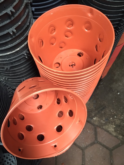 Chậu nhựa trồng lan hình dáng kiểu chậu đất nung, ưu điểm nhẹ, bền, so với chậu đất nung, chậu dày dặn, màu gạch đẹp mắt, giá rẻ.Gồm các size:
