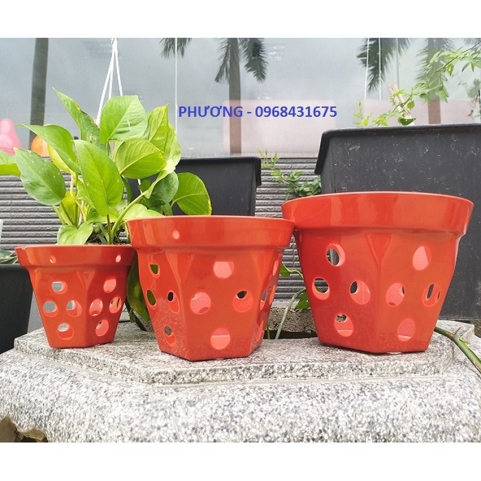 Chậu trồng lan bằng nhựa PVC bền đẹp, màu đỏ gạch