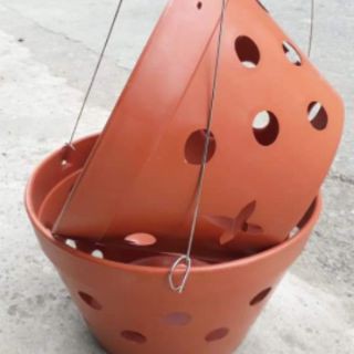 - Trên miệng chậu có đục lỗ để treo giỏ lan lên giàn.