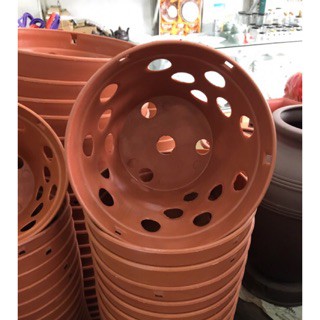 Chậu nhựa trồng lan phi 27 giả gốm nung loại 1 dày_Chậu nhựa lan đất đỏ gạch loại đẹp