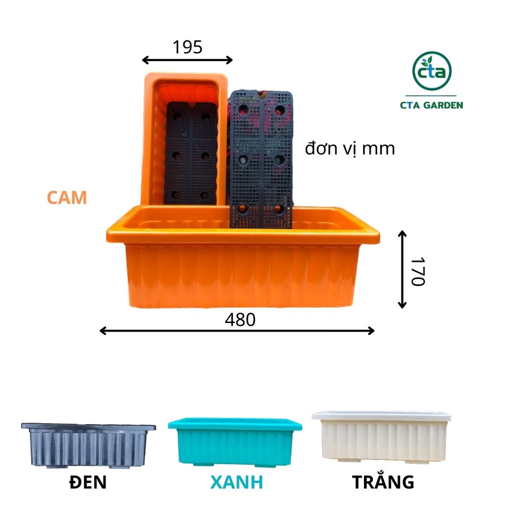 Chậu nhựa trồng rau -trồng cây, hoa – màu sắc đa dạng – kích thước 480 x 195 x 170 (mm) thoát nước tốt, chống ngập úng.Chậu được làm bằng chất liệu nhựa PP nhẹ, cứng cáp, bền, không độc hại - với 4 tông màu: trắng, đen, xanh, cam, mang lại cảm hứng và tô điểm thêm sắc màu cho khu vườn.