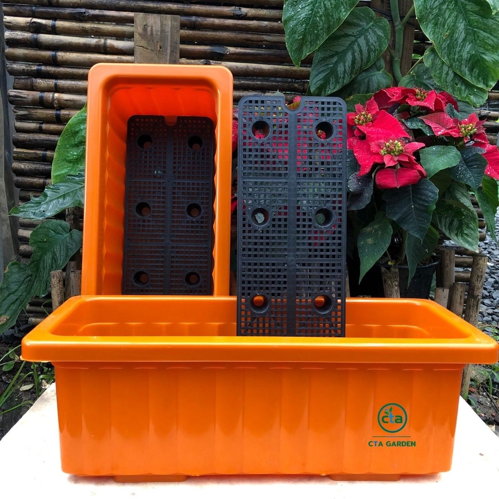 Chậu nhựa trồng rau -trồng cây, hoa do CTA Garden phân phối được thiết kế tiện lợi với cấu tạo 2 tầng, 2 tầng này được ngăn cách với nhau bằng 1 tấm lưới nhựa màu đen, miêng lưới này có tác dụng giữ giá thể trồng cây (đất trồng) ở trên và giữ một phần nước ở phía dưới.