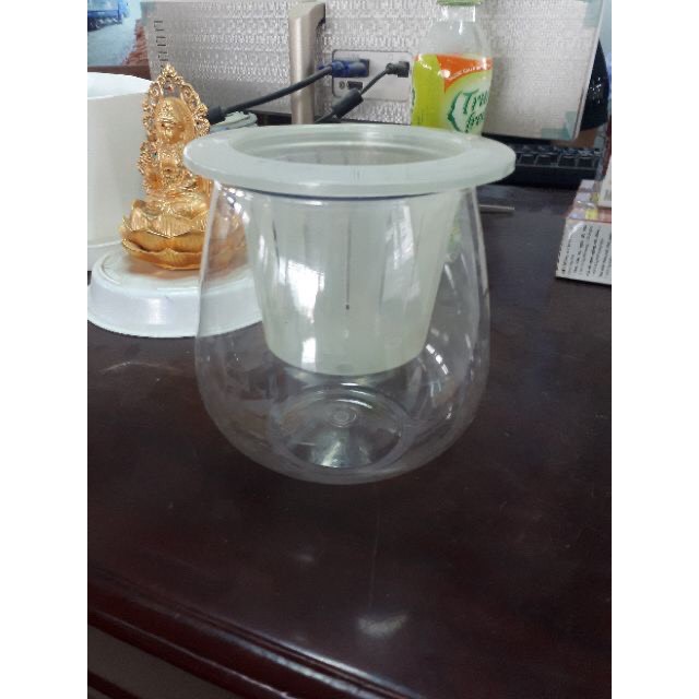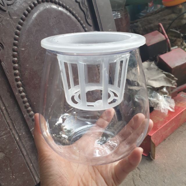 Chậu Nhựa Trong thủy tinh trồng cây thuỷ sinh 10x17cm đã bao gồm giỏ đặt cây