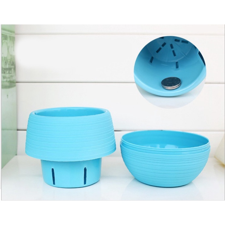 Chậu nhựa tự tưới hình tròn 2 tầng trồng cây sen đá, xương rồng và cây cảnh mini các loại. Chậu nhựa mini có 2 tầng, tầng trên để chứa giá thể trồng cây, tầng dưới để chứa nước tự tưới cho cây.Kích thước 7x7x7