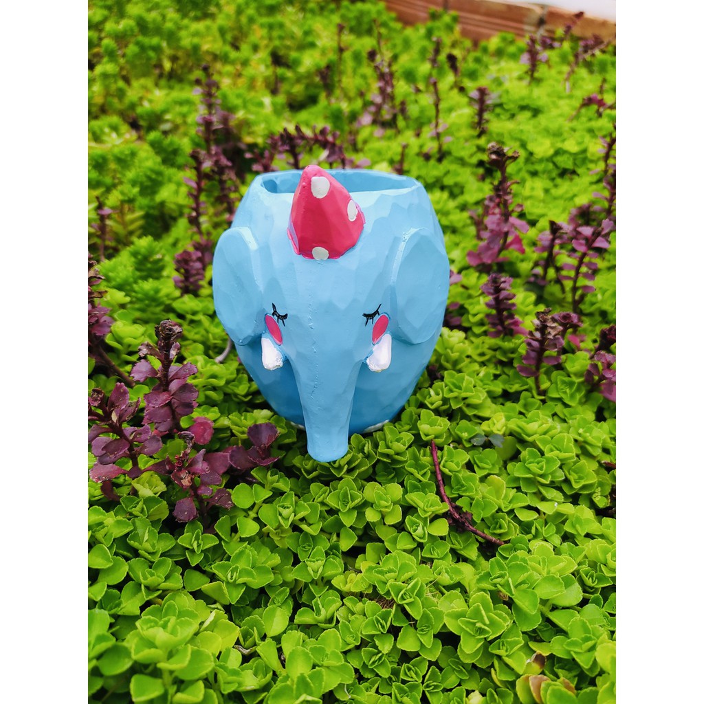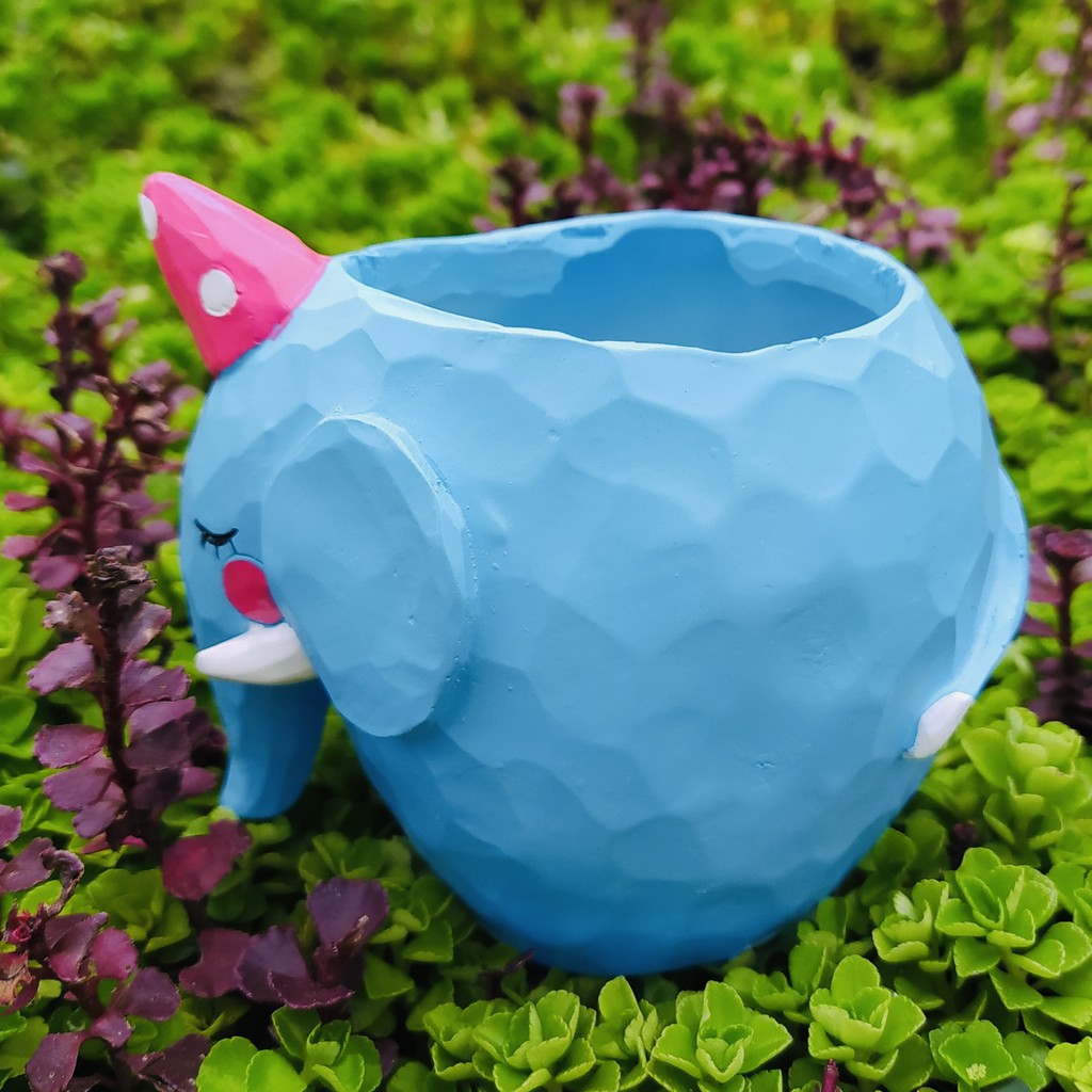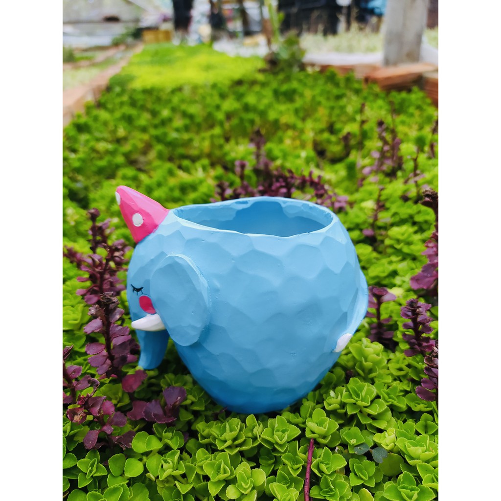 Chậu hình voi xanh siêu đáng yêu, là sự lựa chọn tuyệt vời để trồng những em sen đá 🦛• Chất liệu: NHỰA cao cấp (siêu nhẹ, bền) ❄️