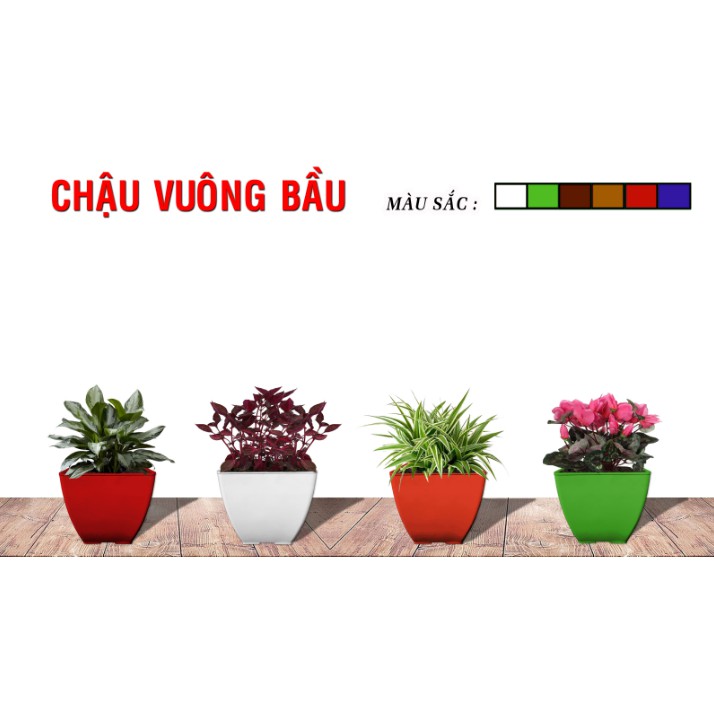 Chậu Nhựa Vuông Bầu Nhiều Màu Trồng Cây, Hoa Kiểng (Chọn Size)