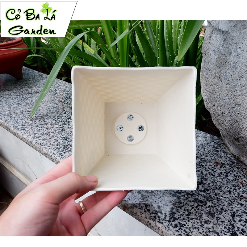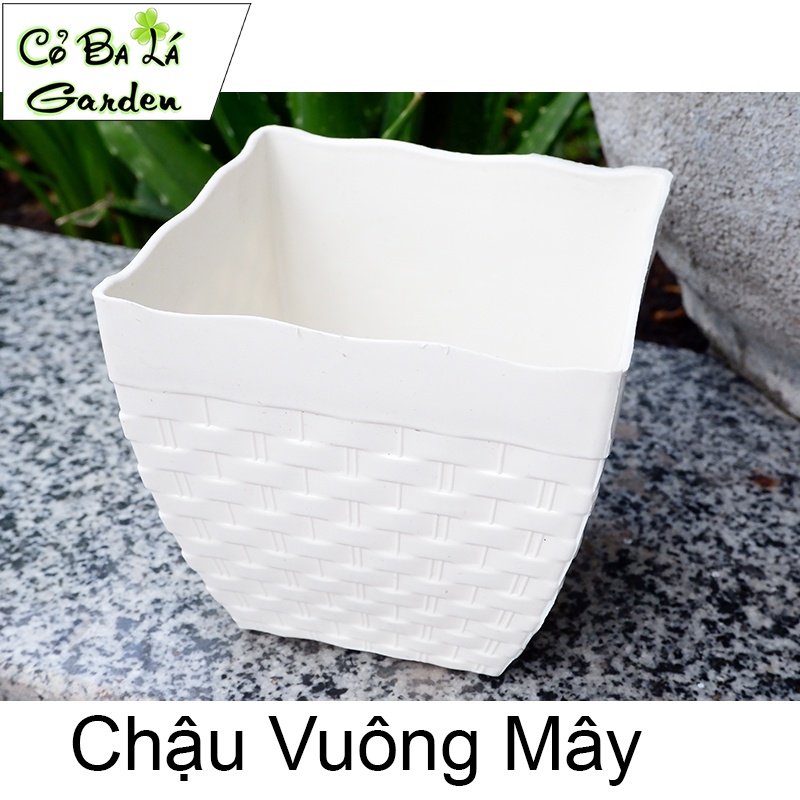 Chậu nhựa cứng vuông mây đànCó kích thước là 13x12