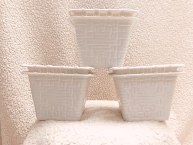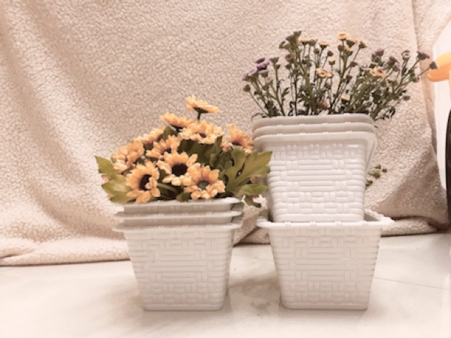 Chậu nhựa vuông đan mây size 14 cm luôn vànhNhựa trắng tốt, nguyên chất, thiết kế dạng vuông trên lớn dưới nhỏ