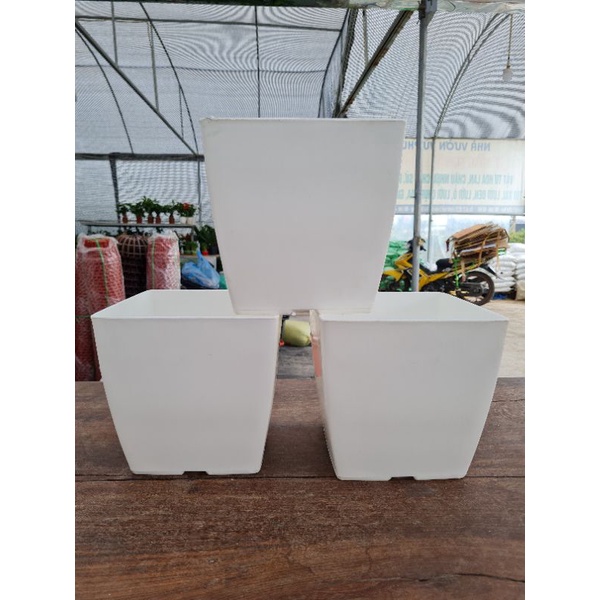 👉Chậu nhựa vuông 20 có kiểu dáng miệng vuông thon gọn dần xuống đáy trông rất hài hòa, góp phần tô điểm cho không gian nhà bạn thêm sinh động và tràn đầy sức