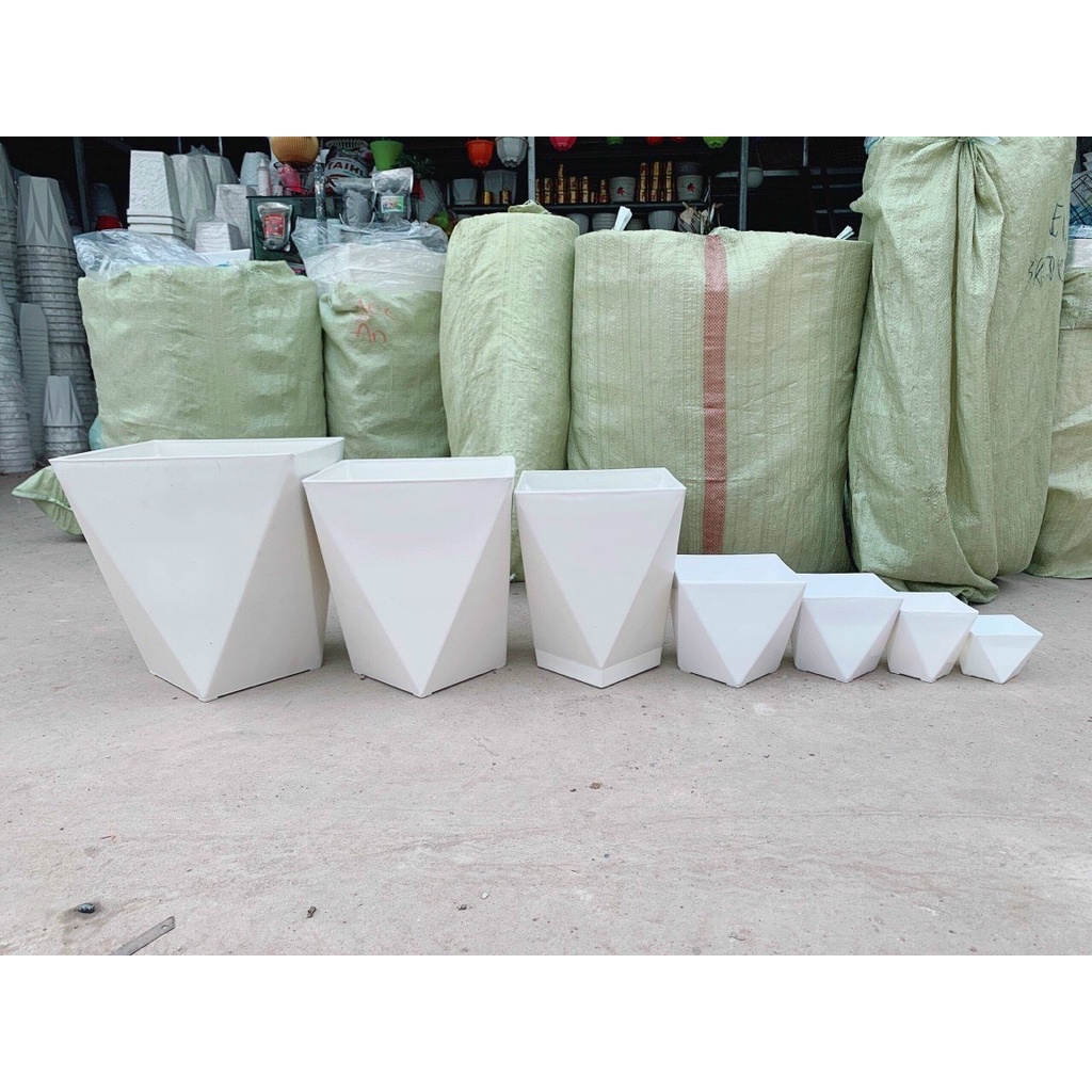 Chậu nhựa vuông vát cạnh giả sứ_Chậu vuông khía cao cấp