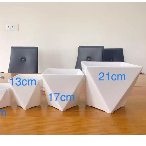 Chậu nhựa vuông khía trắng có 4 size. Kích thước:- Size 1: miệng 11cm