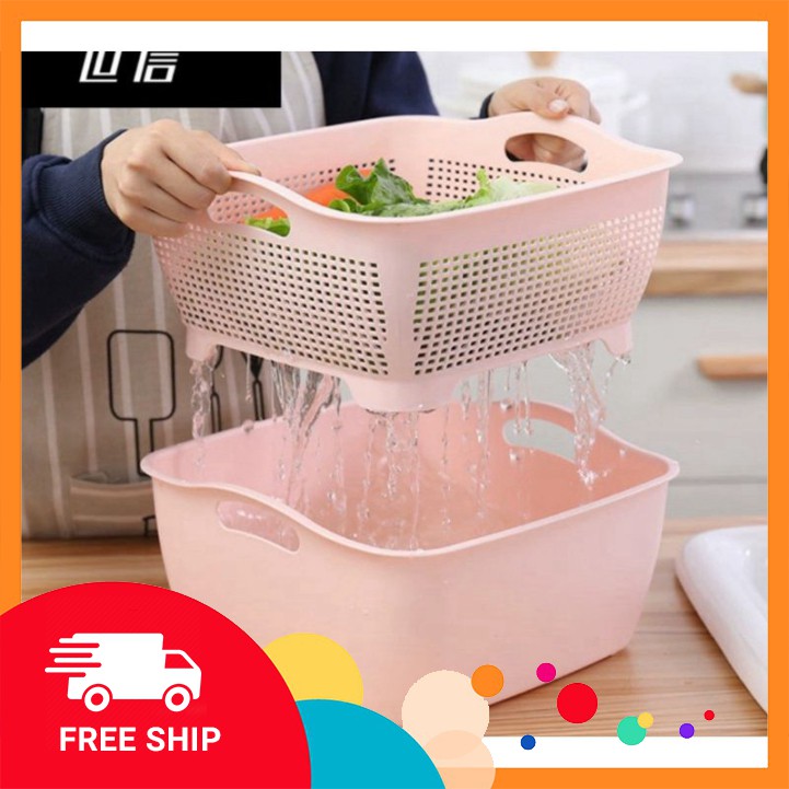 Nhà cửa & Đời sống > Dụng cụ chăm sóc nhà cửa > Chậu, xô & gáo nước || Bộ chậu rổ 2 lớp kiểu Hàn cao cấp GDTACòn hàng