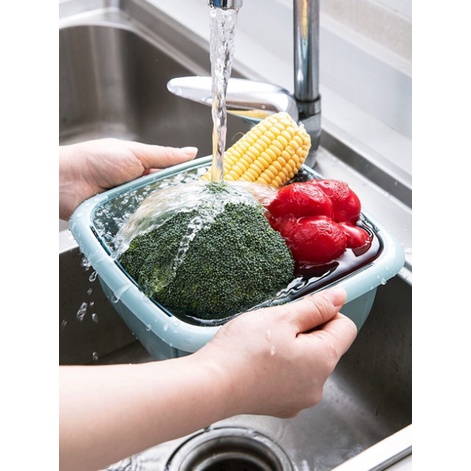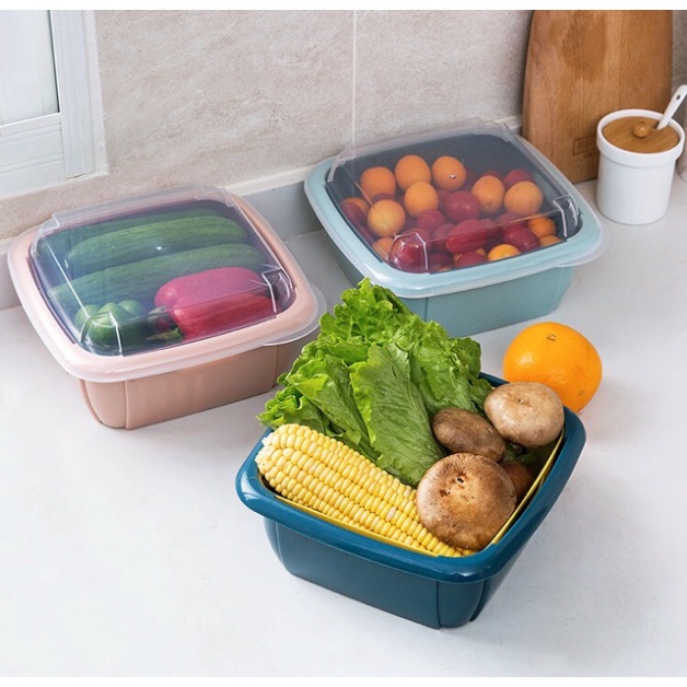 Rổ nhựa kèm chậu có nắp đậy 2 in 1: