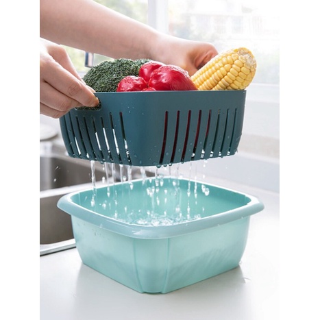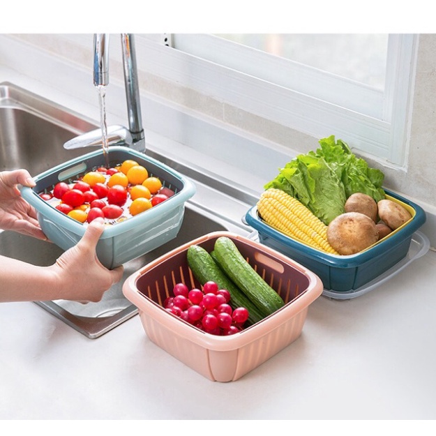 Rổ nhựa kèm chậu có nắp đậy 2 in 1: