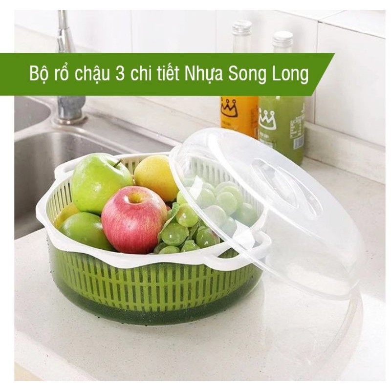 Bộ chậu rổ tròn 3 chi tiết có nắp đậy nhựa Song Long 29cm