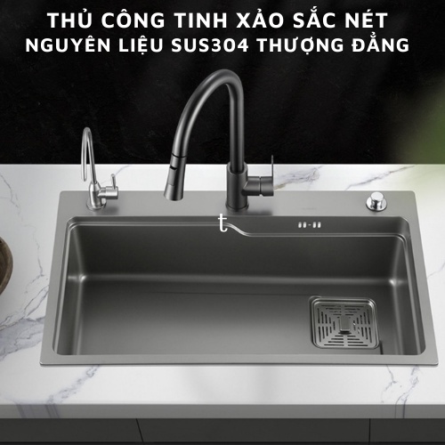 Chậu rửa bát một hố lớn công nghệ nano chống trày xước, chống bám dính, dễ vệ sinhKích thước:75x46 cm
