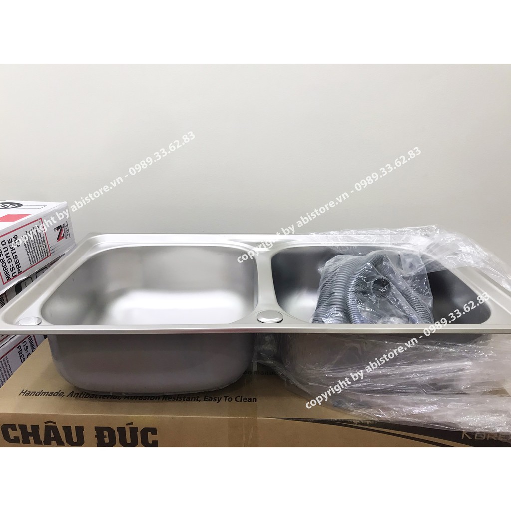 CHẬU RỬA BÁT 2 HỐ 78x43 INOX BÓNG ĐẸP GIÁ RẺ KÈM XI PHÔNG ỐNG XẢ