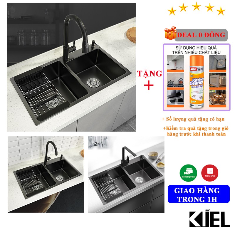 CHẬU 2 HỐ 82x45cm NANO ĐEN + TẶNG 1 BÌNH XỊT BẾP ĐA NĂNG(Lưu ý: Nhận diện sản phẩm có ưu đãi đi kèm: Sản phẩm sẽ được gắn nhãn QUÀ TẶNG 0 ĐỒNG. Khách chỉ nhận được quà tặng khi thực hiện chọn "Mua kèm deal sốc", hãy kiểm tra giỏ hàng thật kỹ trước khi tiến hành thanh toán. Số lượng quà tặng có hạn.)