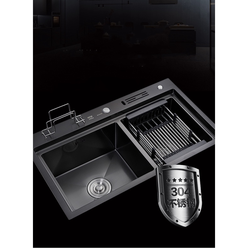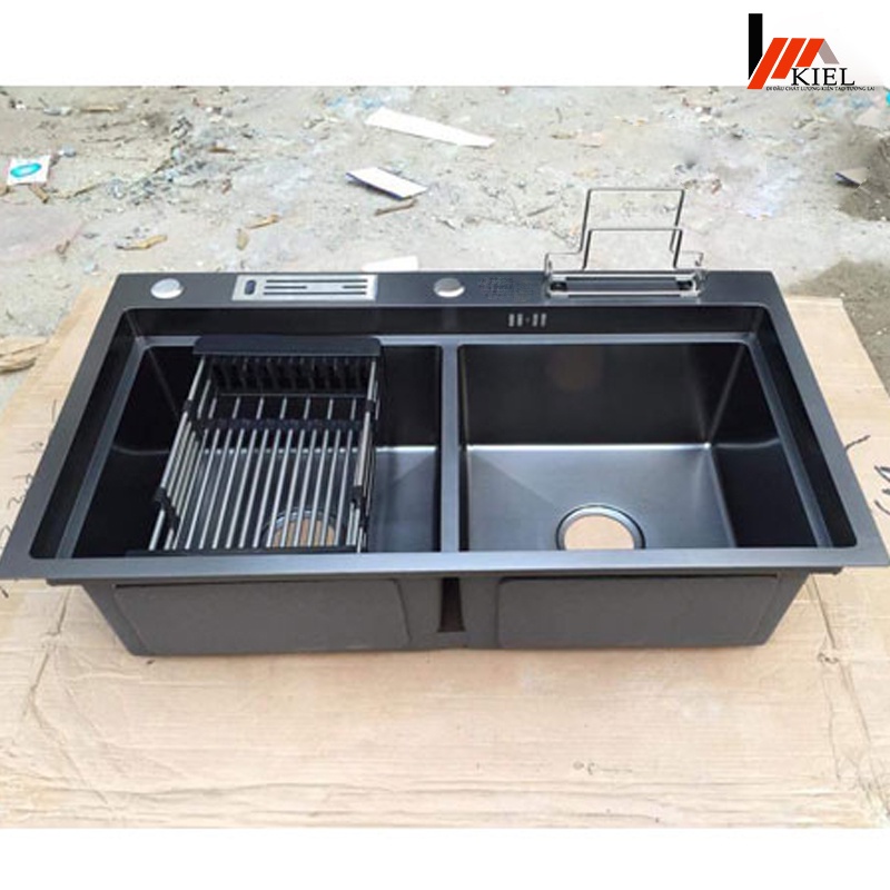 Giới thiệu Chậu rửa bát (chén ) giật cấp inox 304 phủ nan đen có cài dao - Bảo hành 3 năm