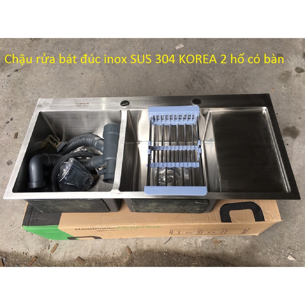 Nhà cửa & Đời sống > Dụng cụ & Thiết bị tiện ích > Chậu rửa & vòi nước || Chậu Rửa Bát Đúc INOX SUS 304 KOREA 2 hố có bànCòn hàng