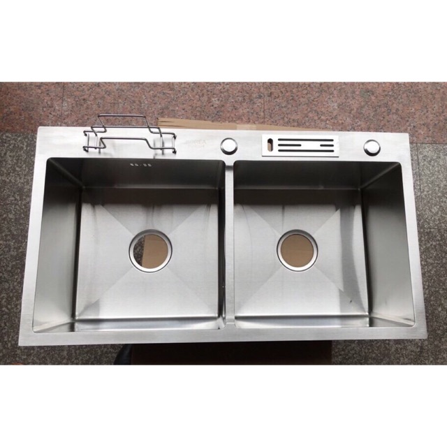 Chậu rửa bát hai hố cân có cài dao cài thớt
