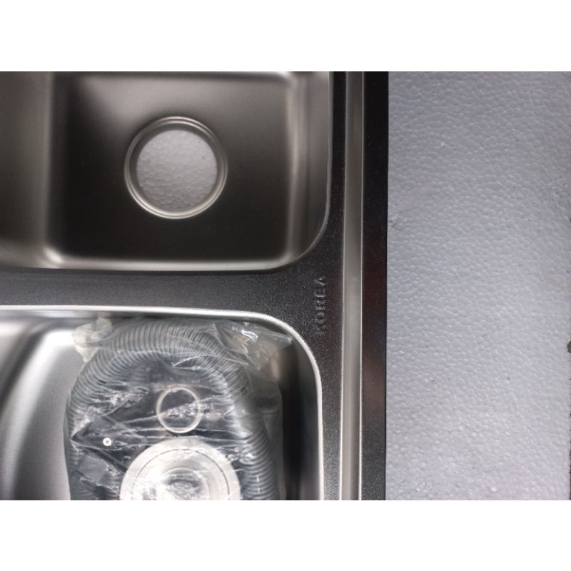 Phía sau chậu có 1 lớp màu đen sơn tĩnh điện chống axit ăn mòn, chống tiếng ồn khi rửa bát va vào chậu
