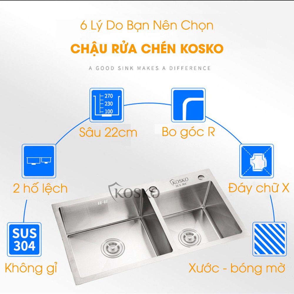 Nhà cửa & Đời sống > Dụng cụ nhà bếp > Khác || Chậu rửa bát inox 304 KOSKO Đúc 2 hố lệch (Tặng Kệ Để Đồ Đa Năng + Bộ ống xả) Bảo hành 12 đến 24 thángCòn hàng
