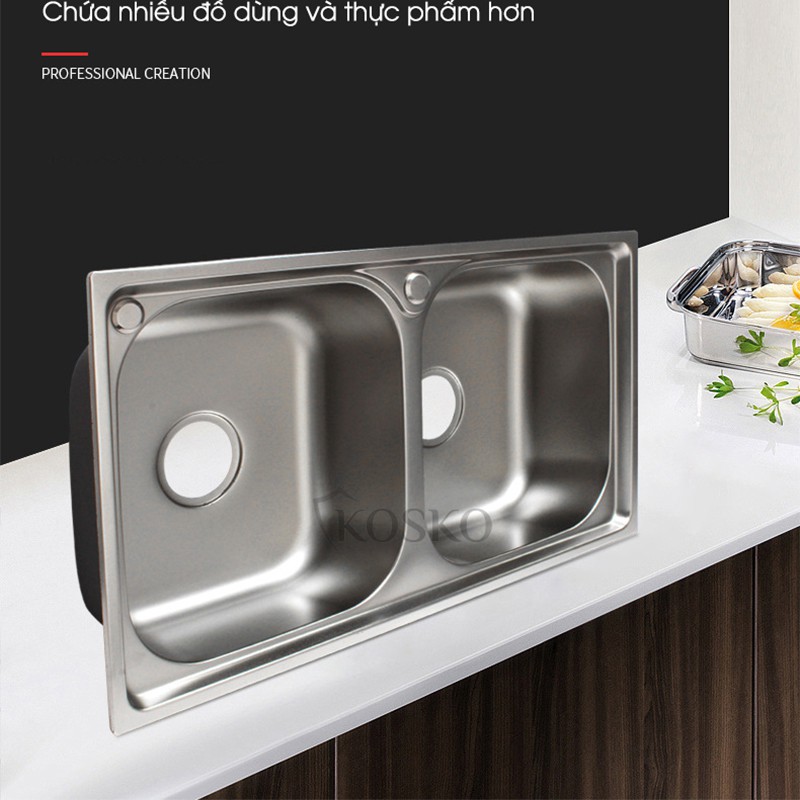 Chậu rửa bát inox 304 Kosko 78x43cm hố to đã bao gồm bộ xả thoát nước (Bảo hàng 12 tháng), chậu rửa chén inox