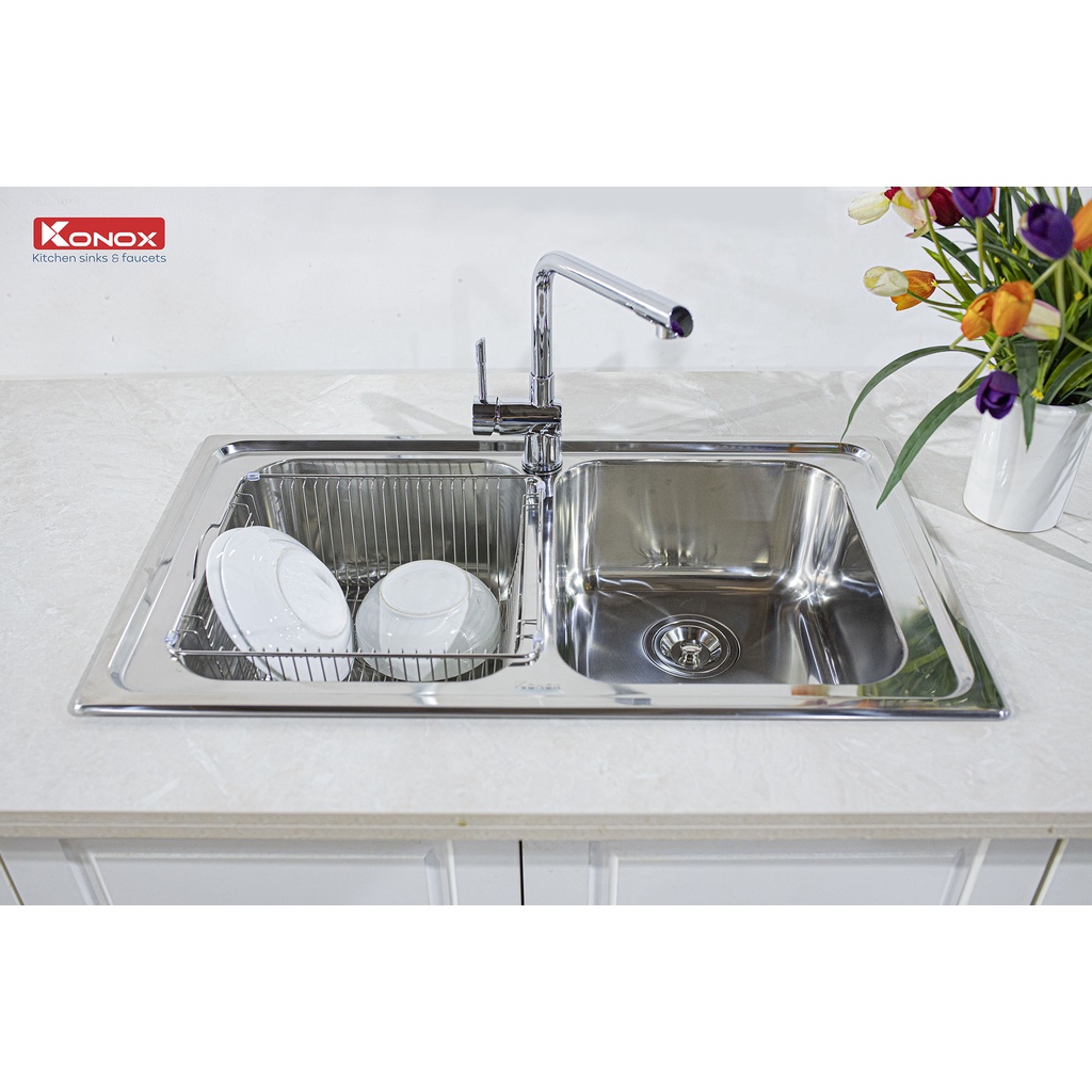 Nhà cửa & Đời sống > Dụng cụ & Thiết bị tiện ích > Chậu rửa & vòi nước || Chậu rửa bát KONOX European Premium KS8650 2B, inox 304AISI, full set gồm Siphon+Giá úp bát inoxCòn hàng