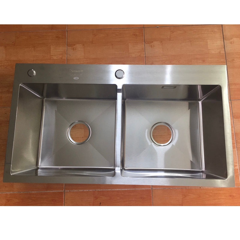 - Kiểu dáng là loại chậu rửa bát 2 hố cân
