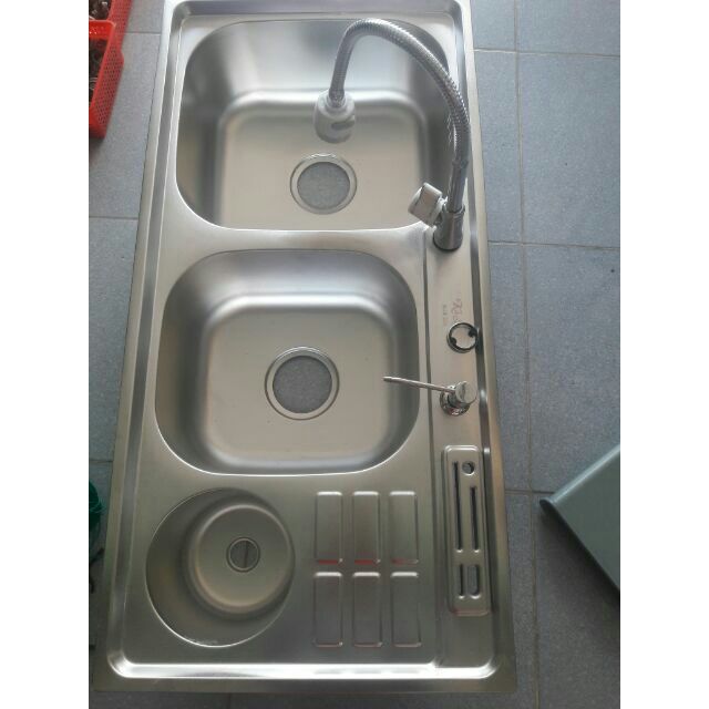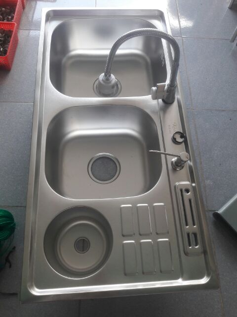 Nhà cửa & Đời sống > Đồ dùng phòng tắm > Kệ đựng xà phòng || Chậu rửa chén 2 hộc Inox có hố rác và bình xà bôngCòn hàng