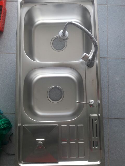 Chậu rửa chén 2 hộc Inox có hố rác và bình xà bông.Sản xuất bới Kali.