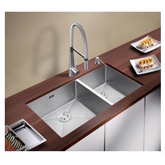Chậu rửa chén bát 2 hố đặt âm cách điệu thiết kế hiện đại ,sang trọng lòng chậu sâu công nghệ ép liền .