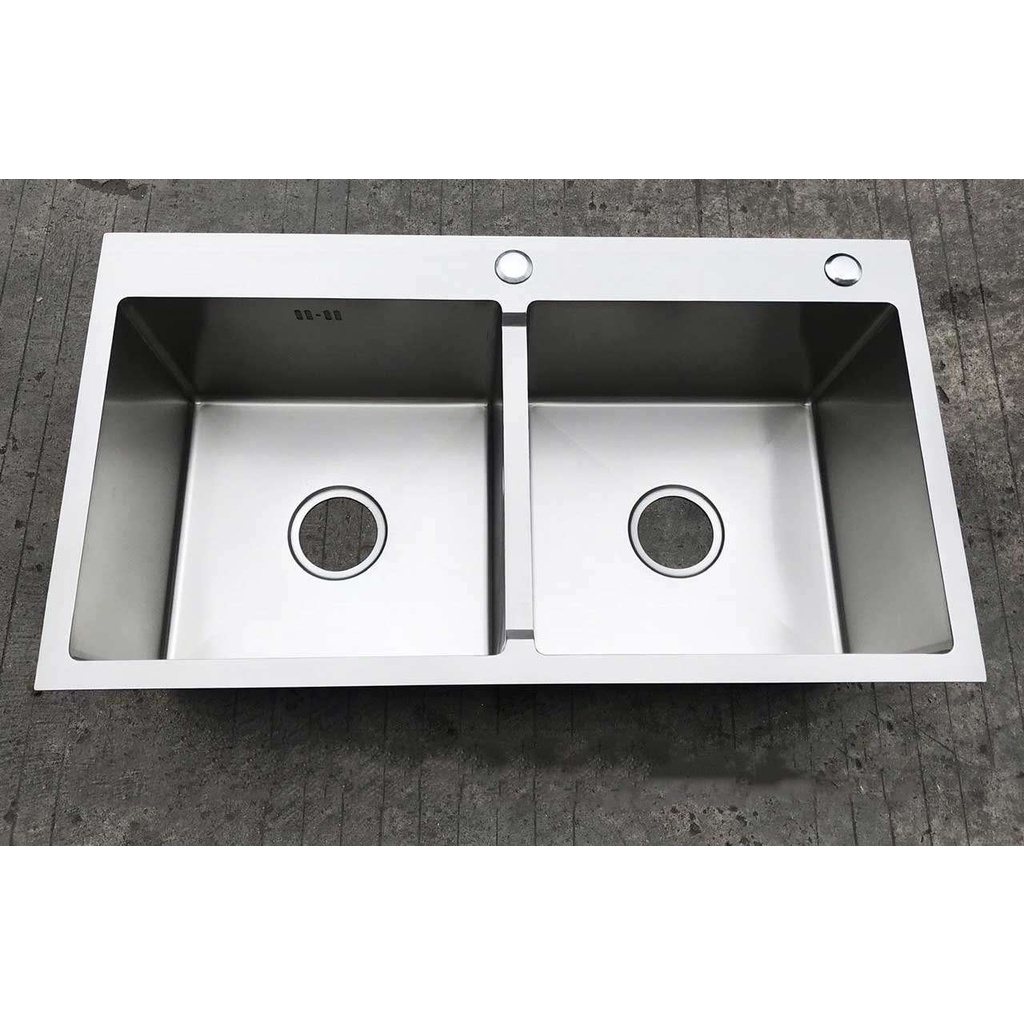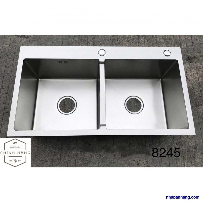 Đối với chậu kích thước 82x45cmThiết kế tiện lợi 2 hộc chậu lệch (Giúp các bà nội chợ phân biệt được 1 chậu rửa bát, chảo lớn, 1 chậu để rửa rau, phân biệt được như vậy nên rất sạch, không rửa tùm lum,