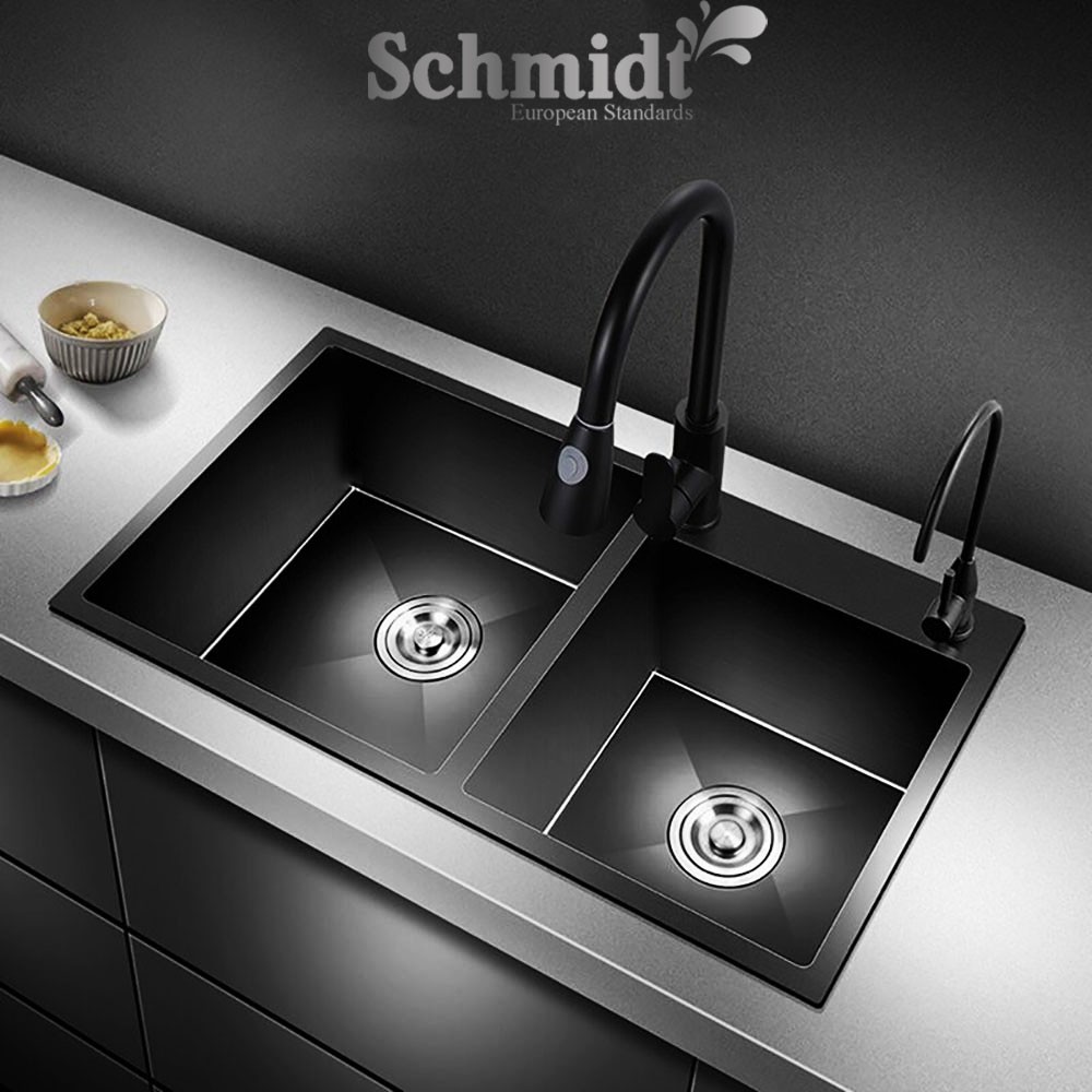 Nhà cửa & Đời sống > Dụng cụ & Thiết bị tiện ích > Chậu rửa & vòi nước || Chậu Rửa Chén Bát Schmidt Inox 304 Đôi Đúc Phủ Nano Màu Đen 2 Hố Lệch Chống Trầy Xước, Kích Thước 82x45cMCòn hàng