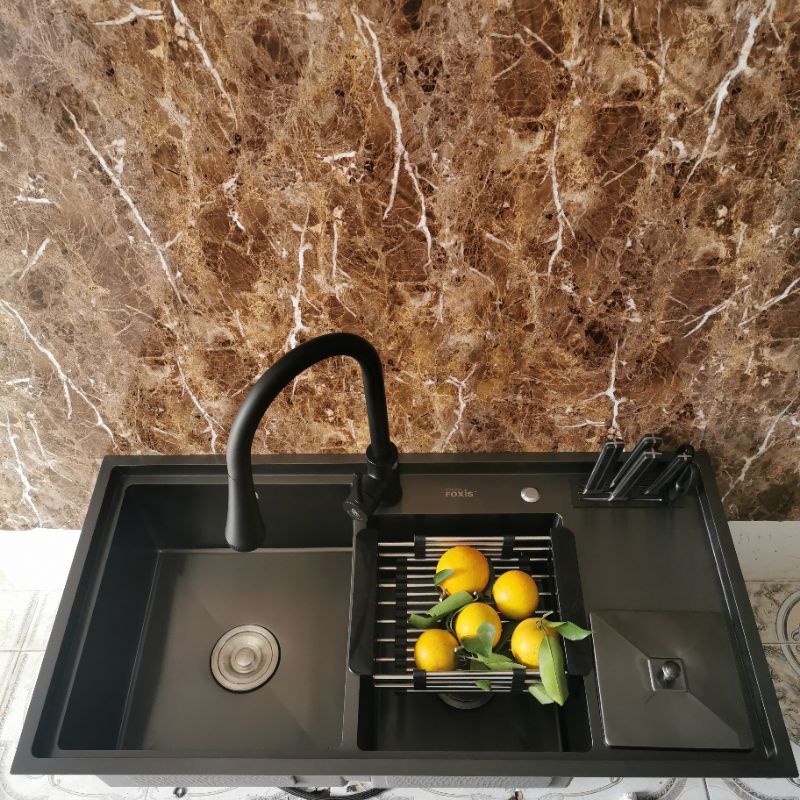 Chậu rửa bát nano FX-9648ND thiết kế sâu, giúp tăng sức chứa nồi chảo, đập tan cảm giác khó chịu khi sử dụng chậu nhỏ không thoải mái