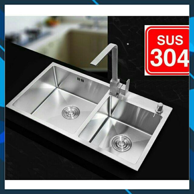 Chậu rửa chén cao cấp inox304, hai hộc lệch nhau, tặng bộ xả inox304 cao cấp, chống hôi. kích thươc 82x45x23cm, bảo hành 03 năm>Chất liệu inox 304 đúc mờ cao cấp, sang trọng, cực kỳ ấn tượng cho căn bếp nhà bạn